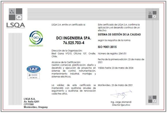 DCI ingenieria SPA es una compañía chilena dedicada a proyectos y servicios enfocados en sistemas de control, instrumentación, mantenimiento industrial, montaje y sistemas eléctricos.
